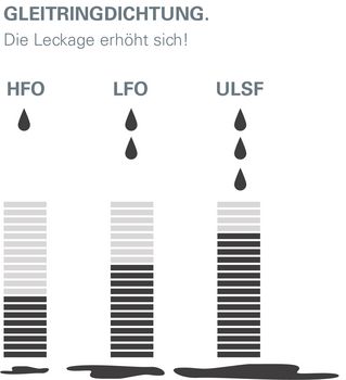 Das Fehlen des Schwefels mindert die Schmierfähigkeit der Flüssigkeit. Ihre Gleitringdichtung nützt sich dadurch schneller ab. Die Leckage erhöht sich und die Verschmutzung nimmt zu.